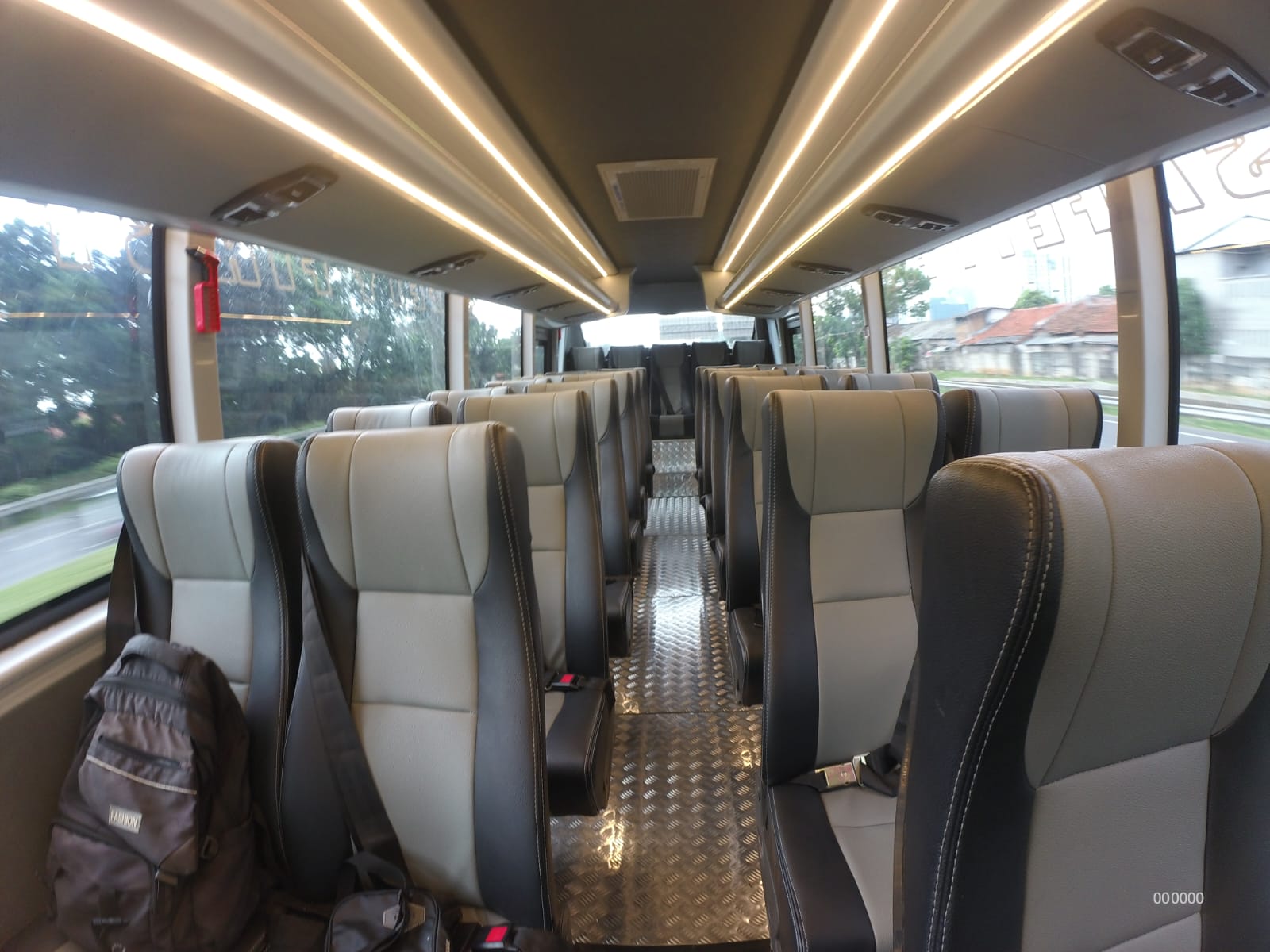 di setiap kursi dalam bus ini telah tersedia safety belt 3 titik untuk keselamatan seluruh para penumpang.